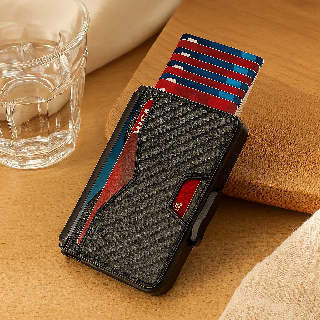 Diese minimalistische Aluminium-Geldbörse wurde für den modernen Mann entwickelt und bietet fortschrittliche RFID-blockierende Technologie zum Schutz Ihrer sensiblen Daten. Der robuste Magnetverschluss schützt Ihre Karten, während der PU-Lederbesatz dem eleganten Metalldesign einen edlen Touch verleiht.
