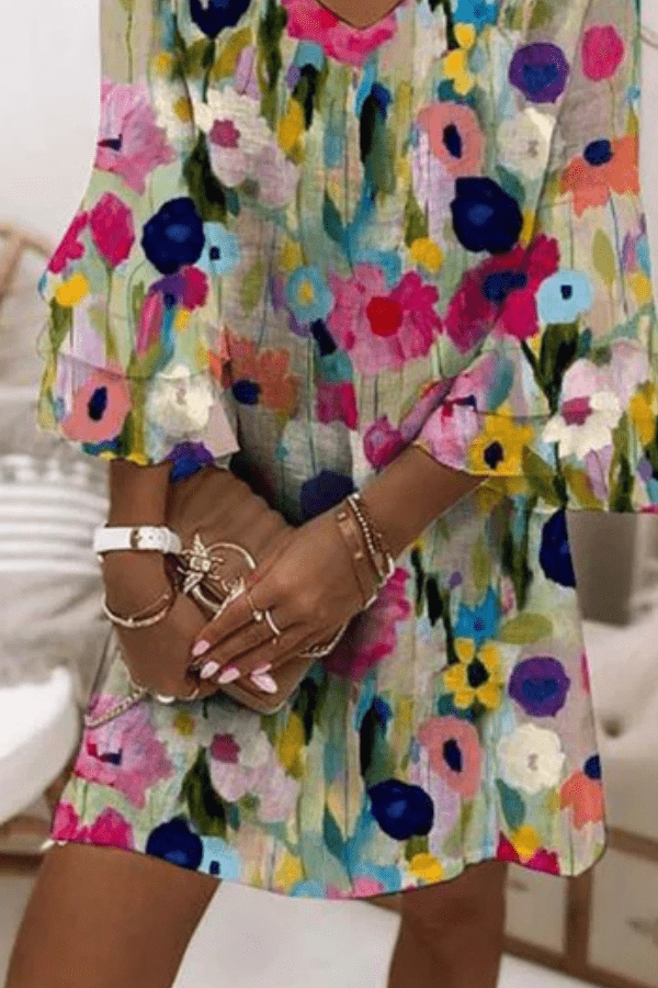 Arlena – Elegantes V-Ausschnitt Mini-Kleid mit Blumenmuster