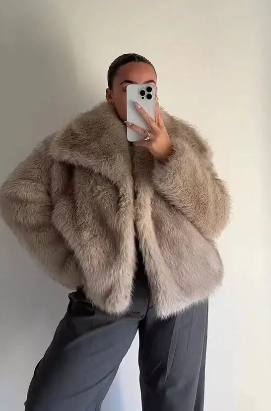 Erleben Sie ultimativen Stil und Komfort mit unserem Damen kunstfelljacke, der nicht nur wärmt, sondern auch Ihr Fashion-Statement setzt. Dieser Mantel kombiniert Funktionalität mit Eleganz, und garantiert einen glamourösen Auftritt, egal ob auf einem Stadtbummel oder bei einem Abendevent. Verfügbar in verschiedenen Farben, finden Sie sicherlich den perfekten Ton, der zu Ihrem persönlichen Stil passt.