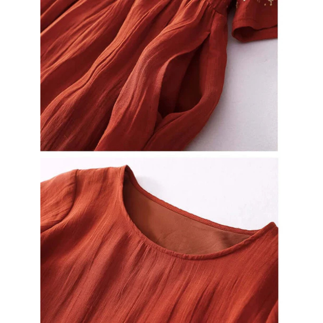 Damen Lose Bestickt Rundhalsausschnitt Kleid | Maxi