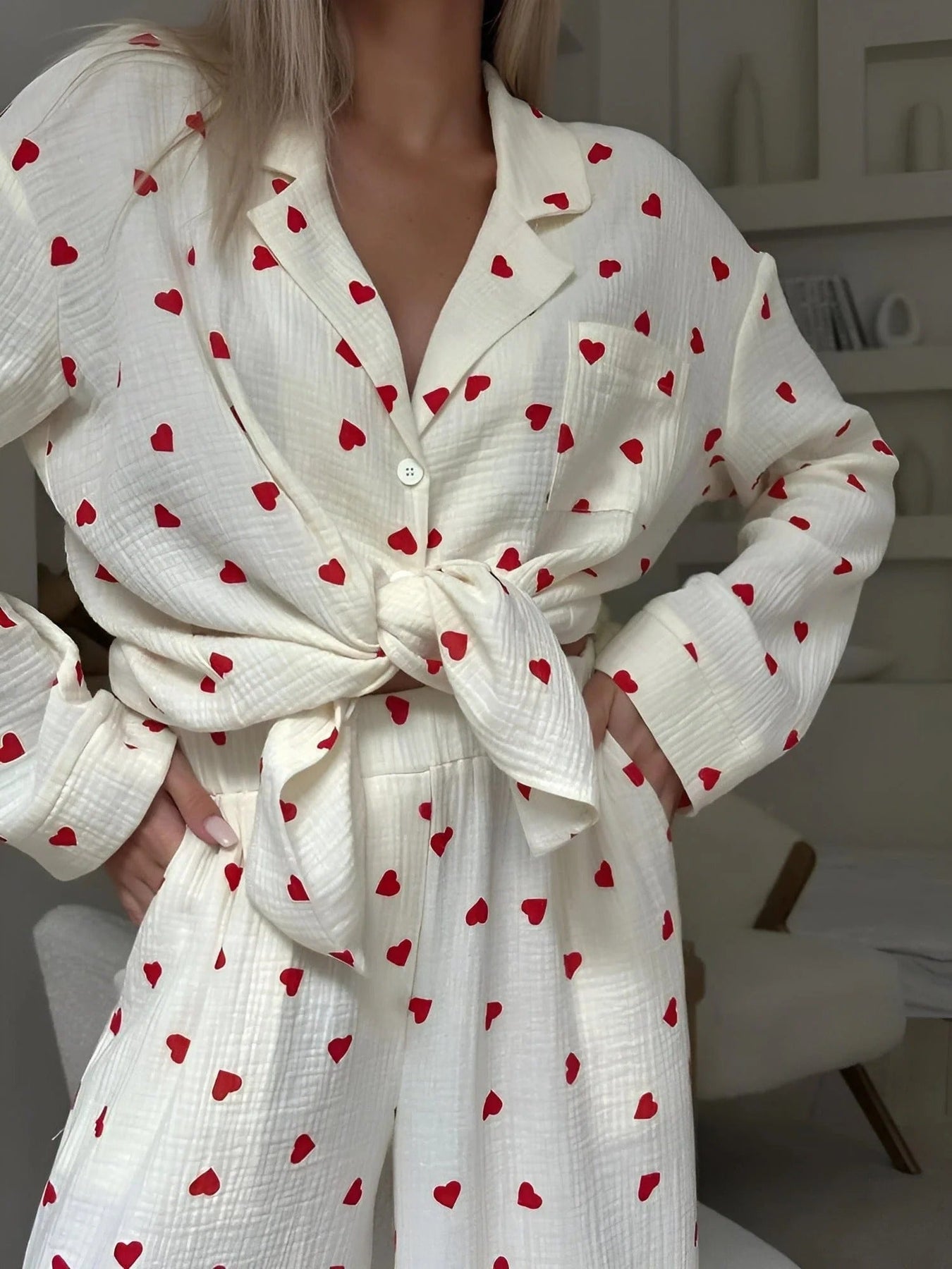 Luxuriöser Komfort für jede Nacht – Die Damen-Pyjama-Set-Innovation mit Herz-Print