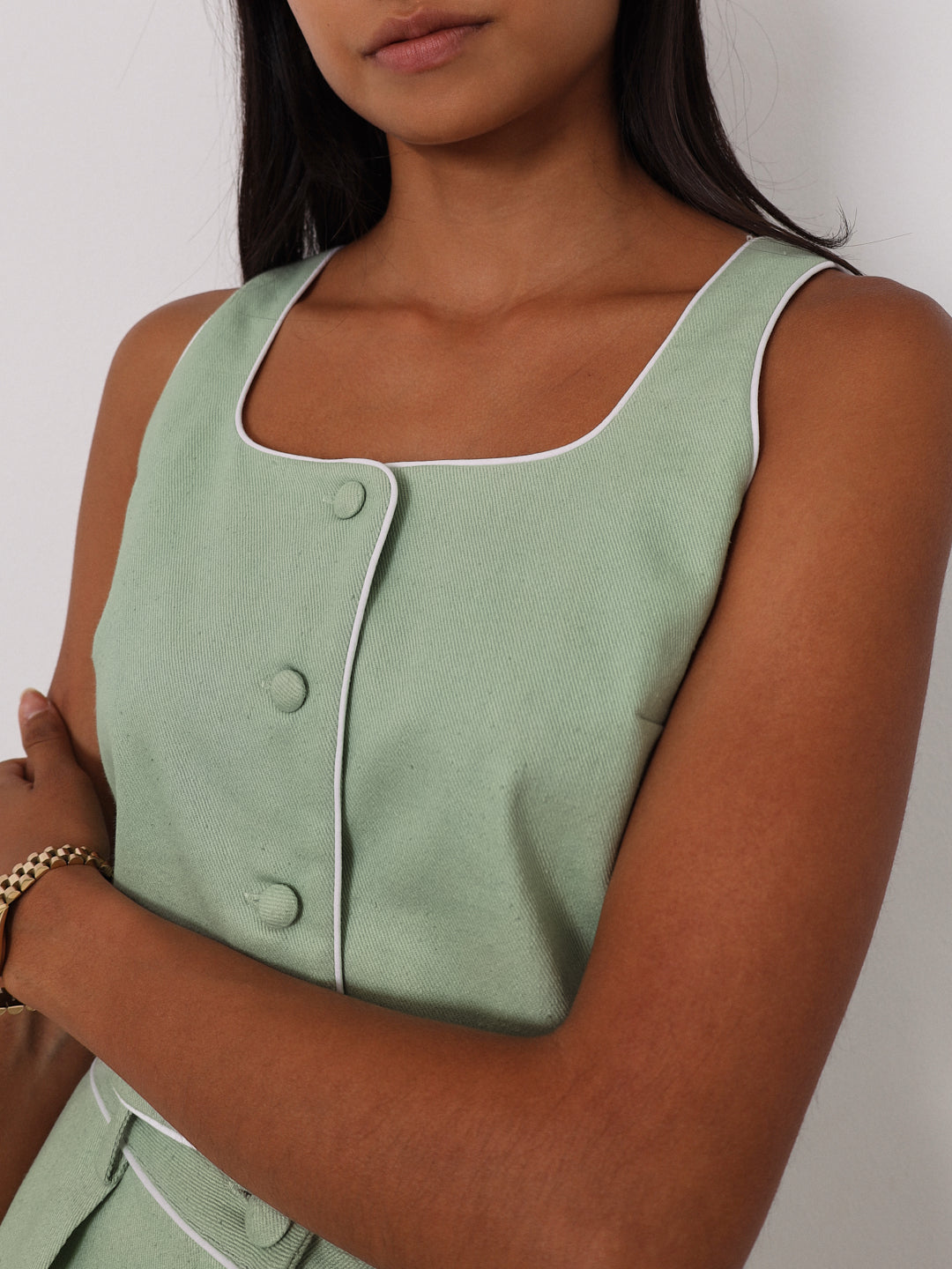 Erica | Shola Kontrastkanten Denim Top | Pistazie/Weiß