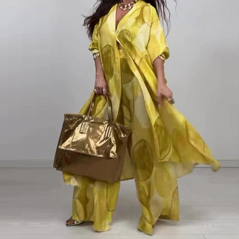 Finn | 🌤️🌤️Modisches 2-teiliges Set mit Druck: Langarm-Bluse und Weitbeinhose