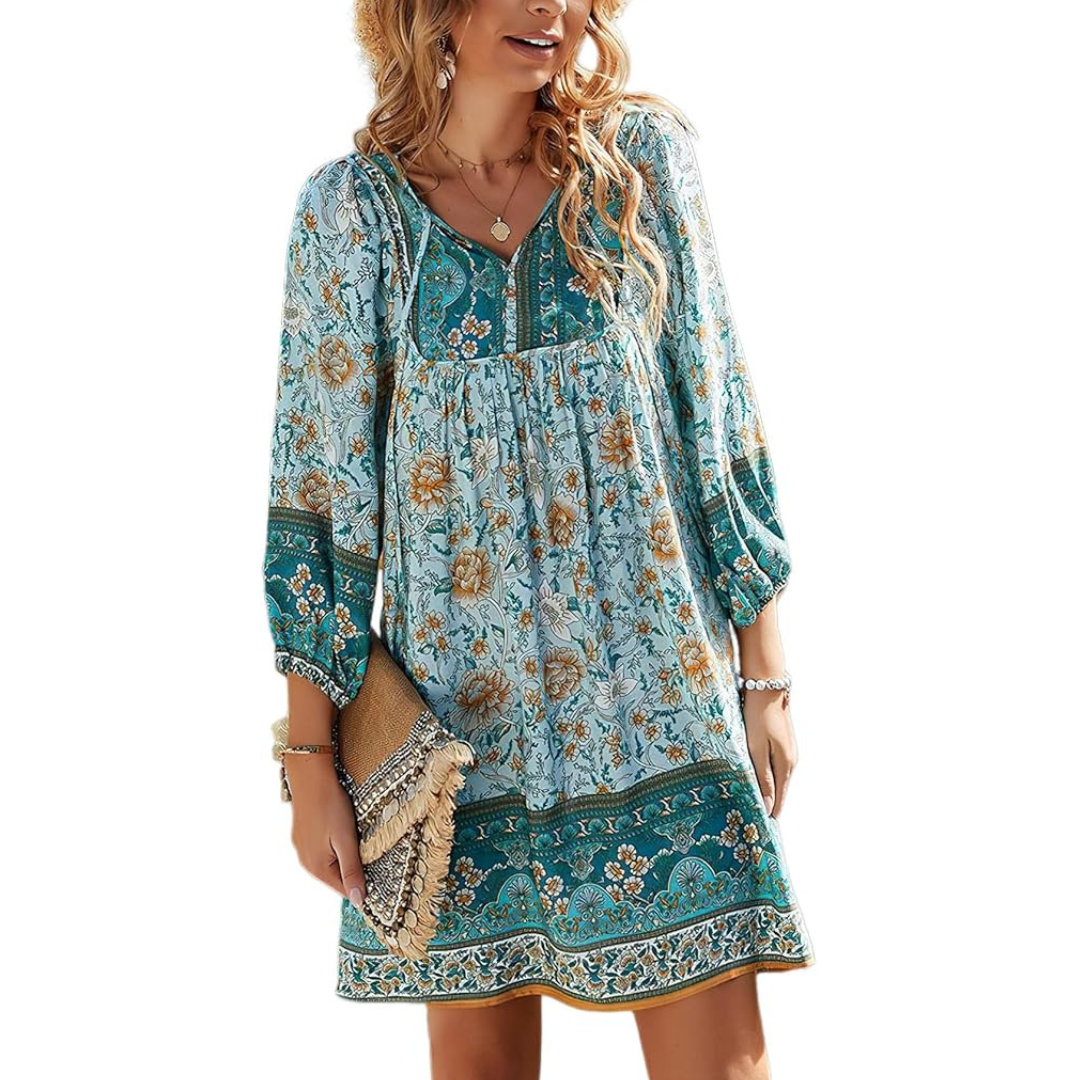 Dieses wunderschöne, locker sitzende Blumenkleid mit verführerischem V-Ausschnitt verleiht Ihnen einen schicken Bohème-Schauen Sie. Gefertigt aus hochwertigen Stoffen lässt es Ihren Körper frei atmen und ist somit ideal für alle Ihre Sommeraktivitäten. Werten Sie Ihre Sommergarderobe mit dem Fio-Kleid auf und tragen Sie den Bohème-Chic-Stil selbstbewusst und bequem. Erhältlich in vielen Farben, die Sie lieben werden.