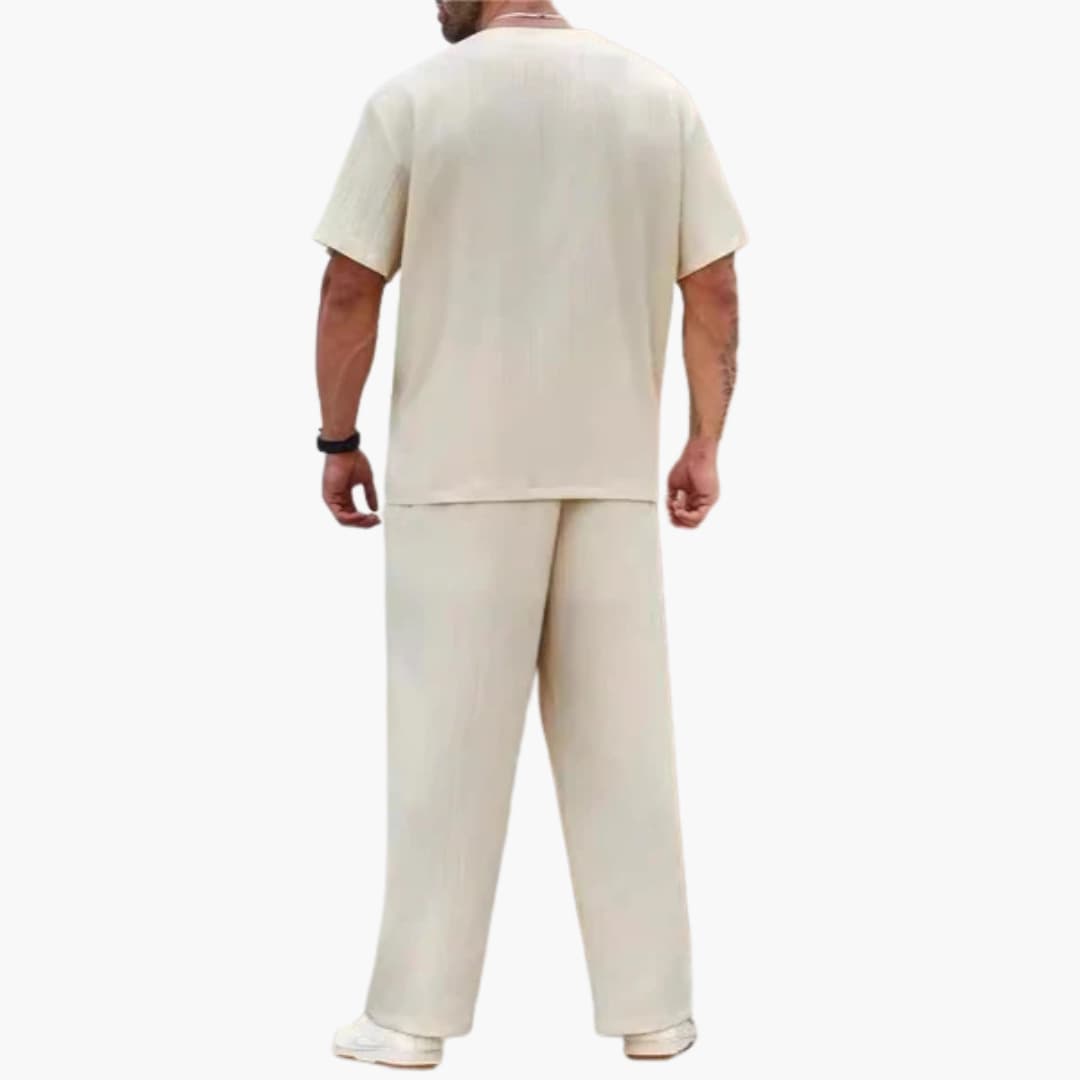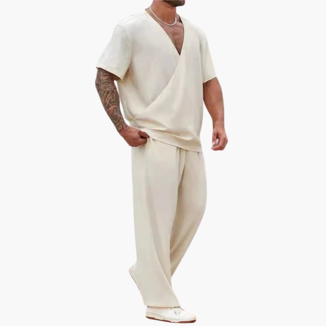 Herren Sommer Zweiteiler mit V-Ausschnitt und langen Hosen