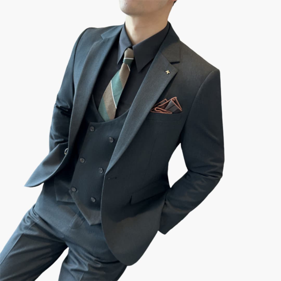Herrenanzug dreiteilig mit Knopfverschluss und Reverskragen