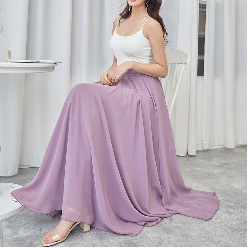 Dieser lange Chiffonrock ist mehr als nur ein Kleidungsstück; er bringt Leichtigkeit und Eleganz in Ihre Garderobe und sorgt dafür, dass Sie bei jedem Anlass strahlen.