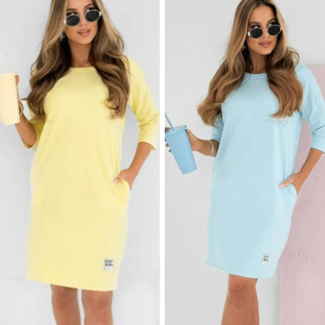 Karin | Rundhals-Armbanduhr mit 3/4-Ärmeln und Taschen