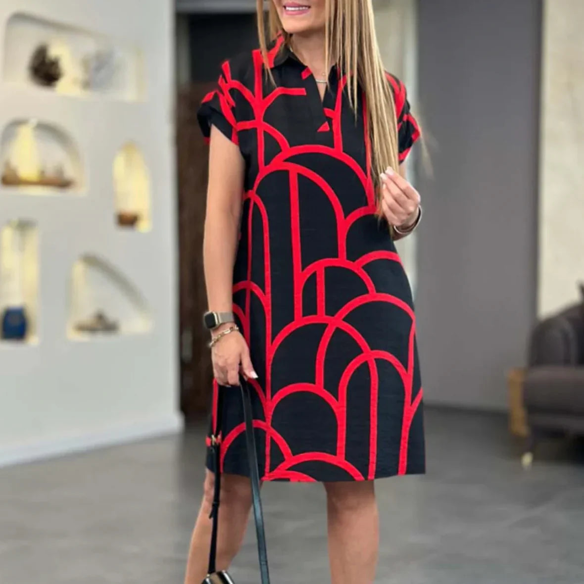 Hebe deine Garderobe mit dem Marie™ Kurzarmkleid auf das nächste Level, das für mühelosen Stil und Komfort entworfen wurde. Hergestellt aus hochwertigem Stoff, bietet dieses Kleid eine schmeichelhafte Passform, die perfekt für alles ist – von entspannten Brunches bis hin zu eleganten Abendveranstaltungen. Das einfache, aber raffinierte Design lässt sich perfekt mit jedem Accessoire kombinieren und macht es zu einem vielseitigen Stück, das du Saison für Saison tragen kannst.