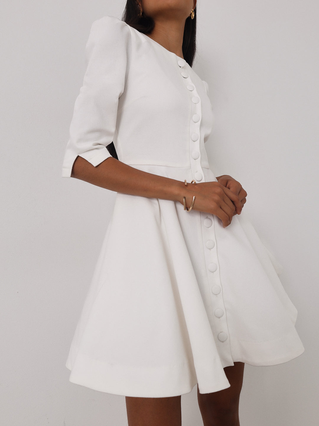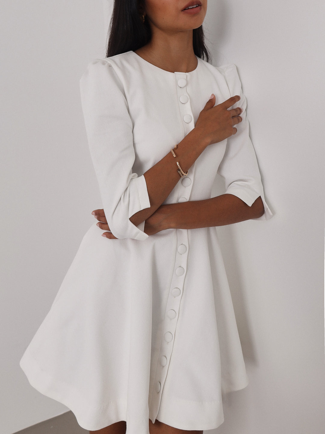 Milan | Roma Elegante Denim-Tageskleid | Weiß