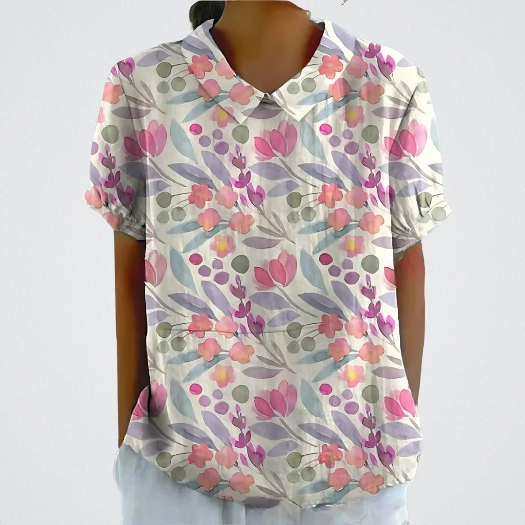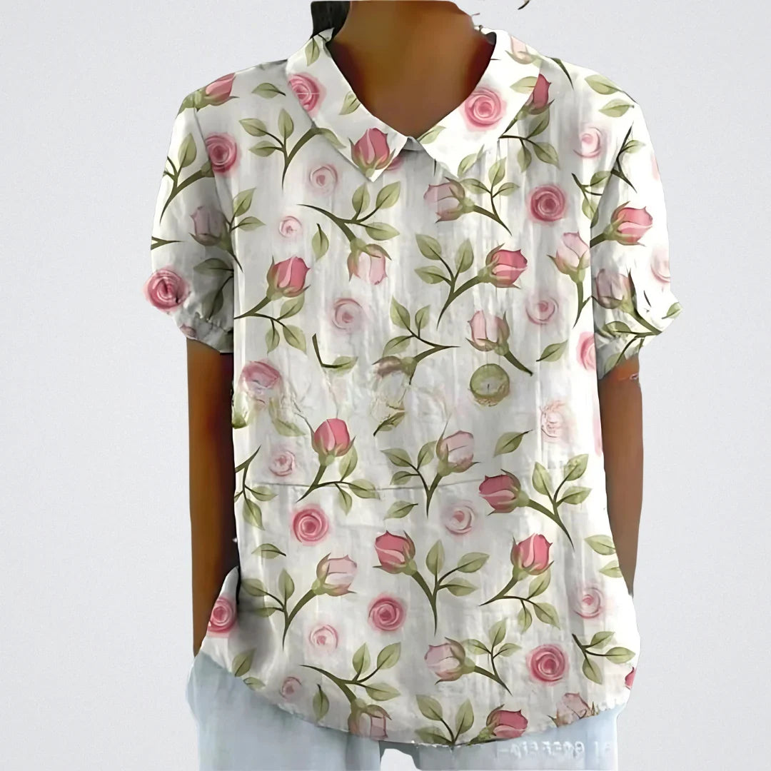 Bringen Sie mit der Nele™ Floral Linen Blouse neues Leben in Ihre Garderobe - eine perfekte Mischung aus weicher Struktur und luftiger Eleganz.