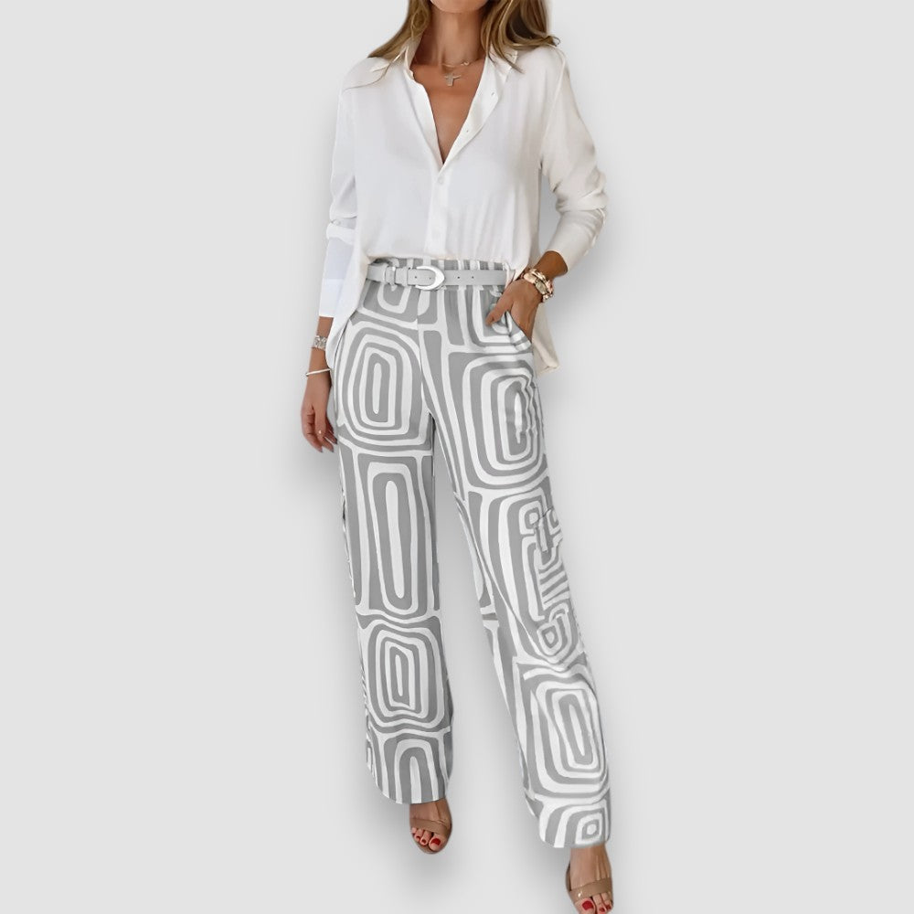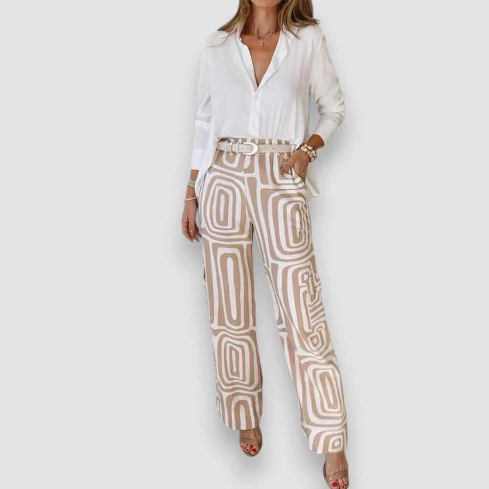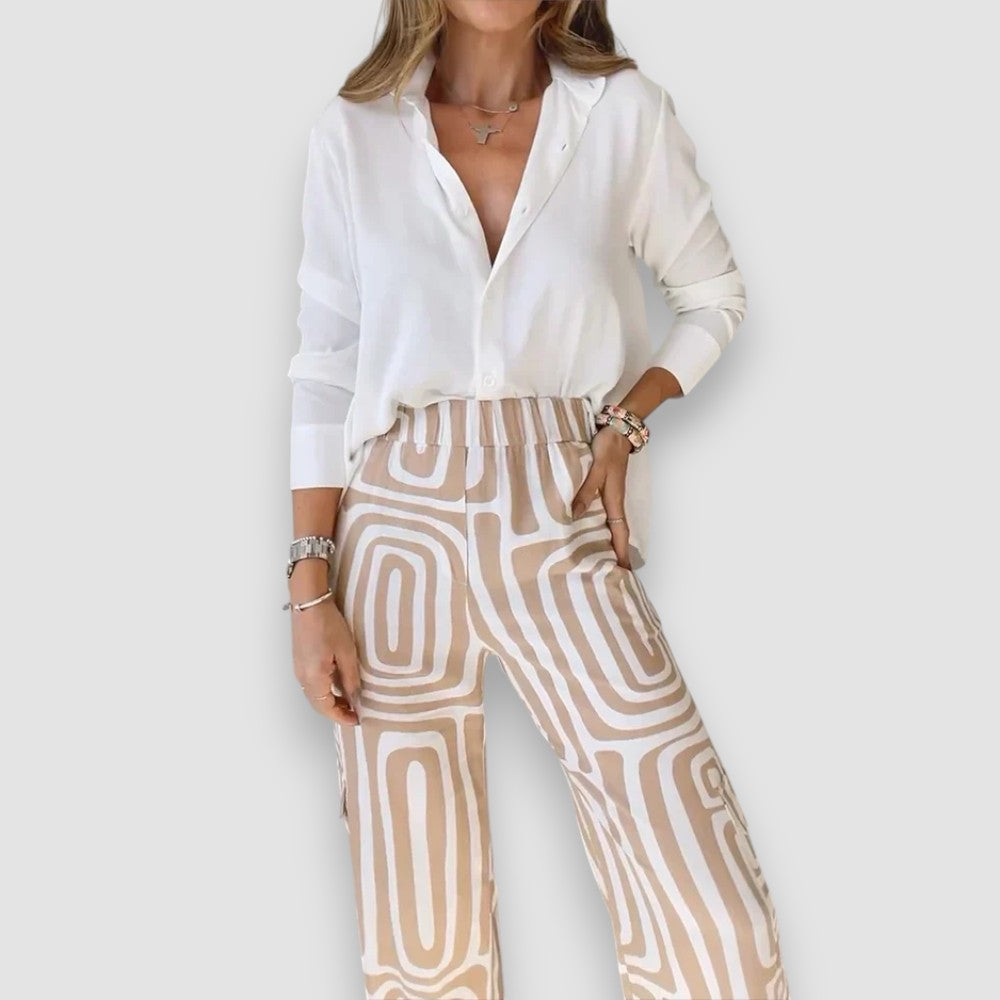 Setze ein stilvolles Statement mit dem Olivia Stilvollen Zweiteilige-Set—eine perfekte Kombination aus Eleganz und Komfort. Das harmonisch abgestimmte Design schmeichelt deiner Silhouette und verleiht dir eine selbstbewusste Ausstrahlung. Als besonderes Extra gibt es einen GRATIS Gürtel dazu!