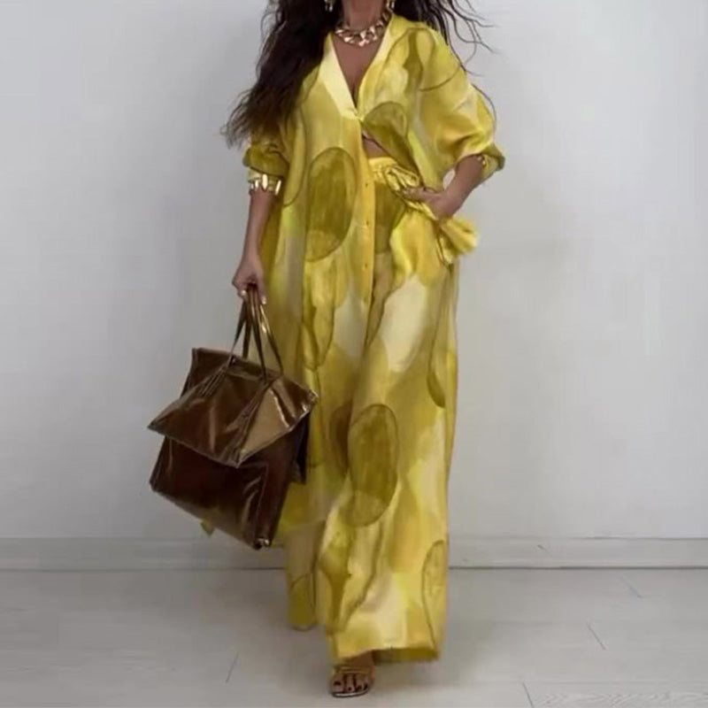 Ora | Modisches 2-teiliges Set mit Druck: Langarm-Bluse und Weitbeinhose