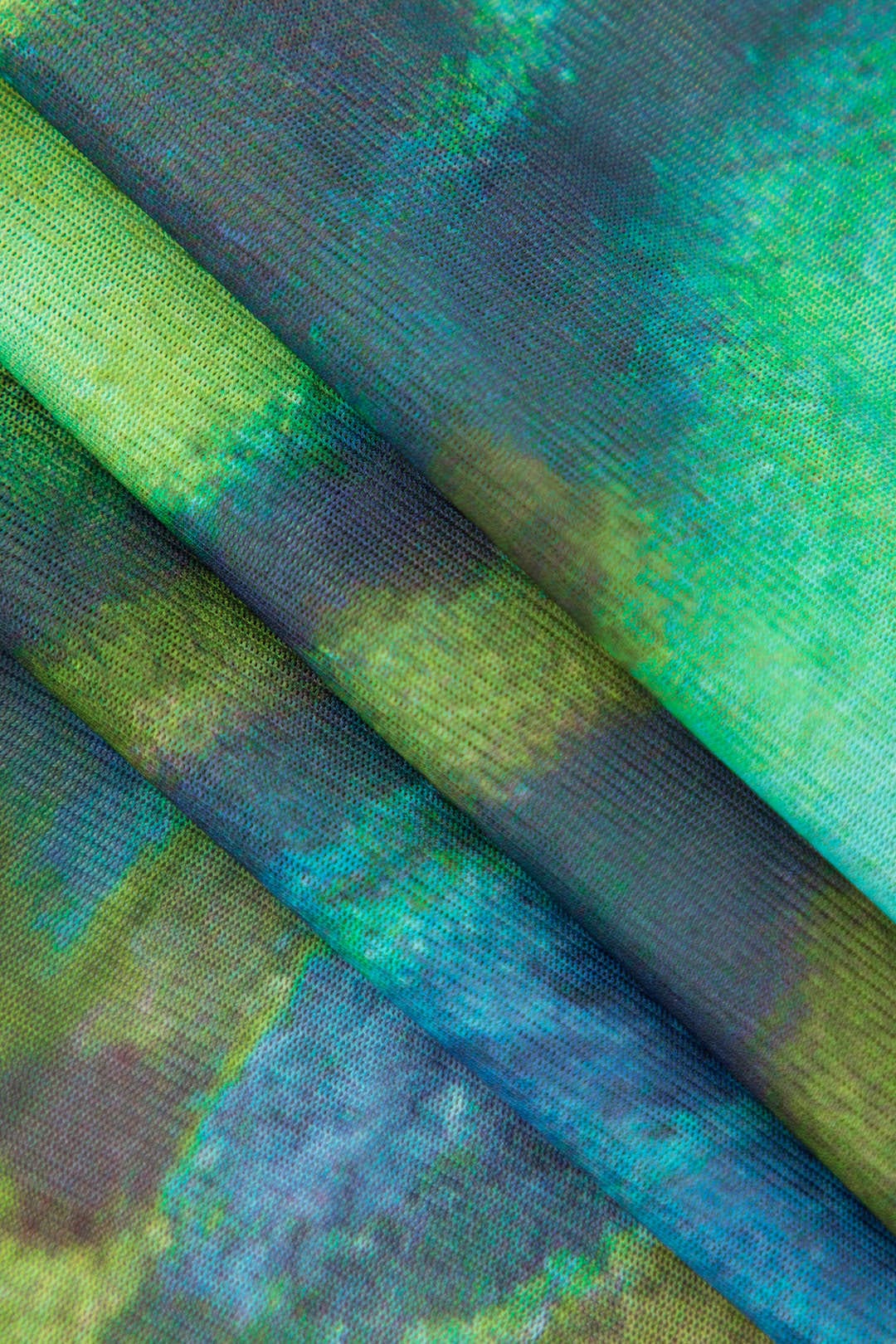 Das Rosina Zweiteiler-Set kombiniert ein kunstvolles Bandeau-Top mit einem fließenden, semi-transparenten Rock, der für eine moderne und feminine Ausstrahlung sorgt. Die abstrakten Prints in Grün- und Blautönen verleihen dem Ensemble eine aufregende Dynamik. Der leichte Stoff sorgt für ein angenehmes Tragegefühl, ideal für sommerliche Tage und besondere Anlässe.