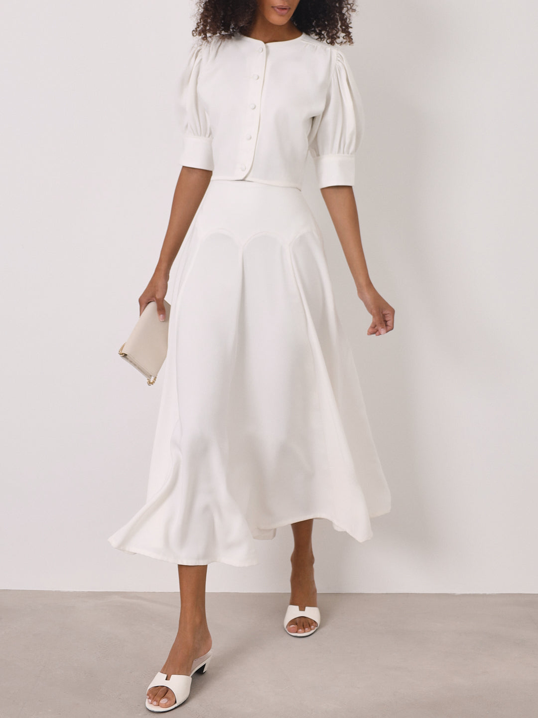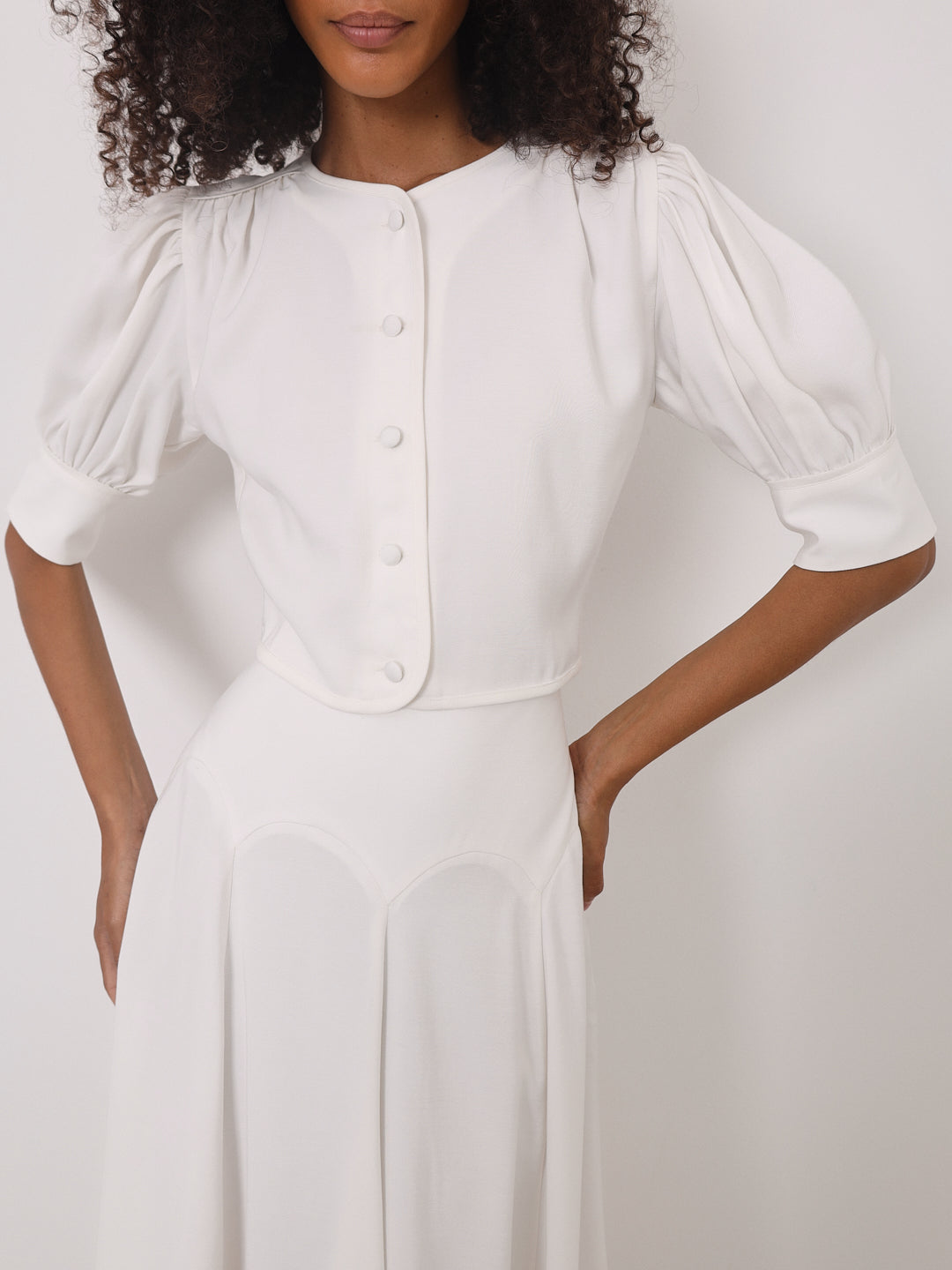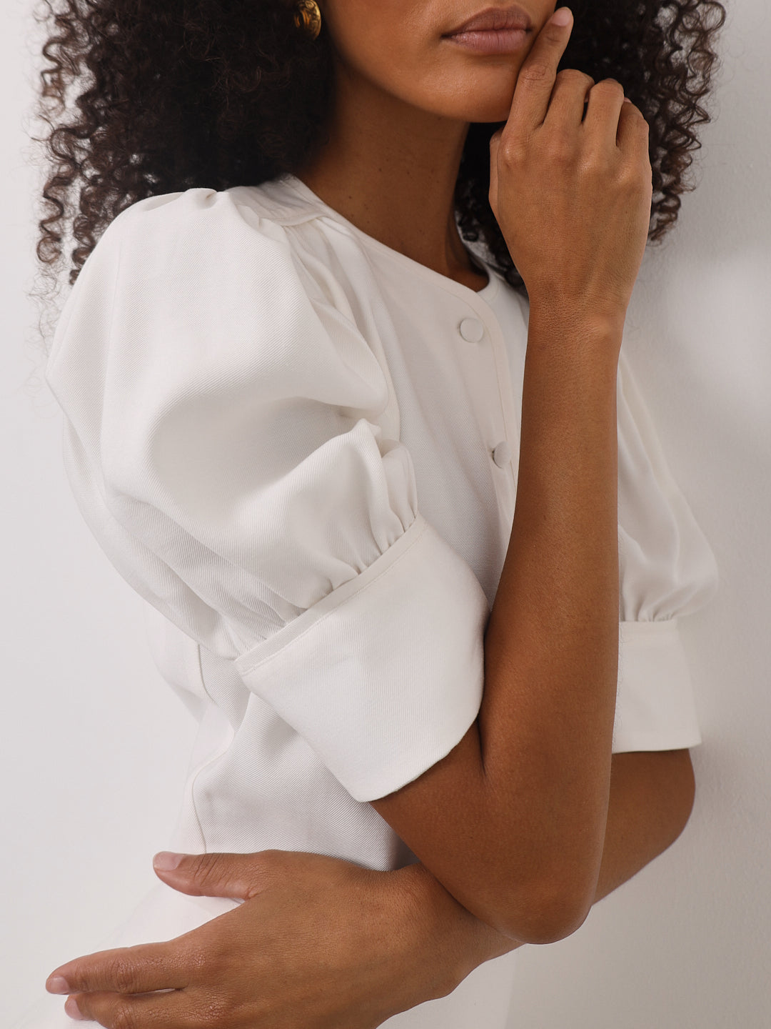 - Raffinierte Details: Puffärmel und selbstbezogene Knöpfe sorgen für einen luxuriösen und stilvollen Look.
