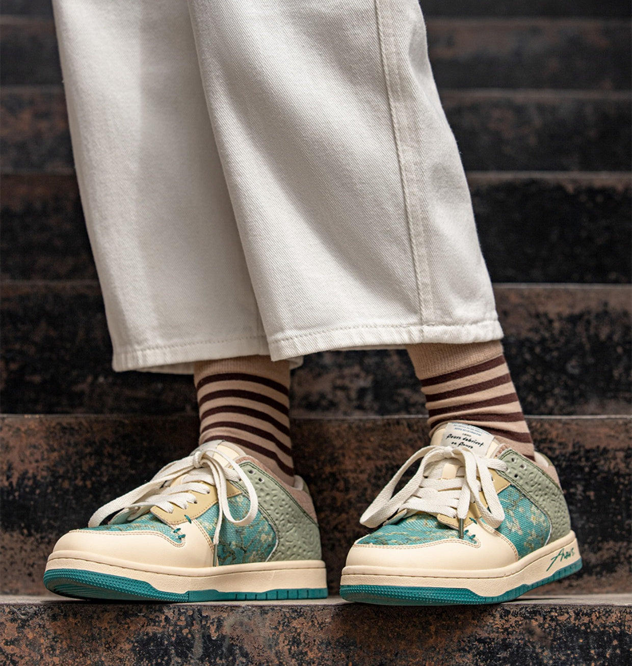 Die Kunst-Sneakers „Arta“ bringen Van Goghs berühmtes Gemälde „Mandelblüte“ direkt an deine Füße. Jedes Paar vereint Ästhetik und Komfort mit einem detailverliebten Design, das sich von der Masse abhebt. Die rutschfeste Sohle, das atmungsaktive Innenfutter und das kreative Printmotiv machen diese Schuhe zum echten Blickfang. Ob casual oder kunstvoll gestylt – diese Sneakers erzählen deine Geschichte mit Stil.