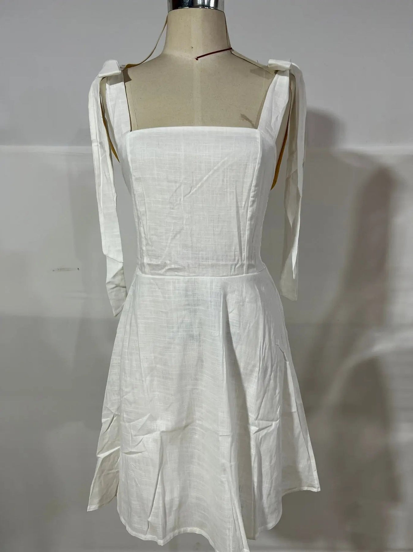 Das Tanja-Kleid vereint Einfachheit und Eleganz in einem wunderschönen A-Line-Schnitt. Die breiten Schultergurte mit Bogendetails und das leichte Baumwollmaterial verleihen dem Kleid einen romantischen Look, der perfekt für Sommertage oder besondere Anlässe geeignet ist.
