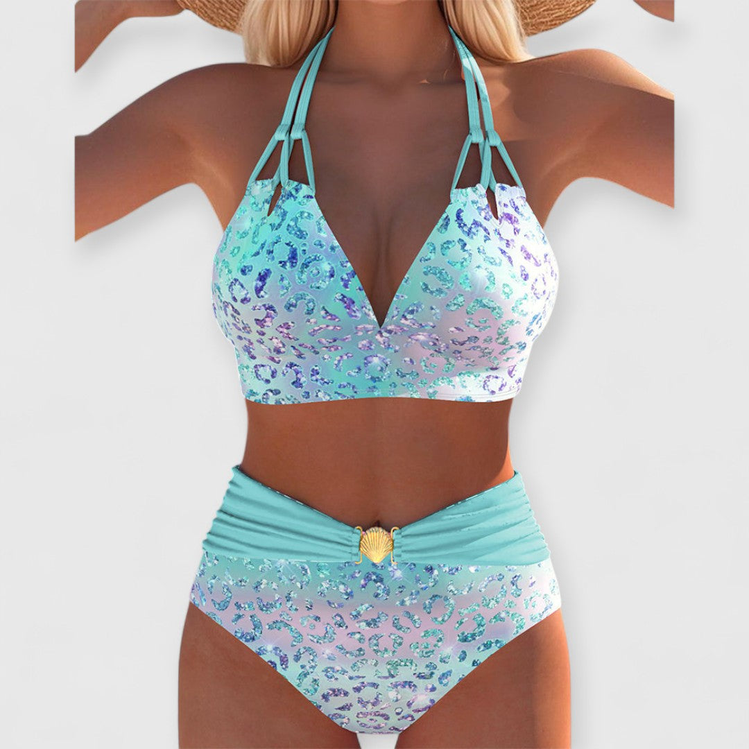 - Stylisch Mit Einem Mutigen Touch - Dieses auffällige Stück verfügt über einen schimmernden Finish und ein trendiges Tiermuster in sanften Farben, das deinem Sommeroutfit einen luxuriösen Touch verleiht, der alle richtigen Blicke auf sich zieht.
