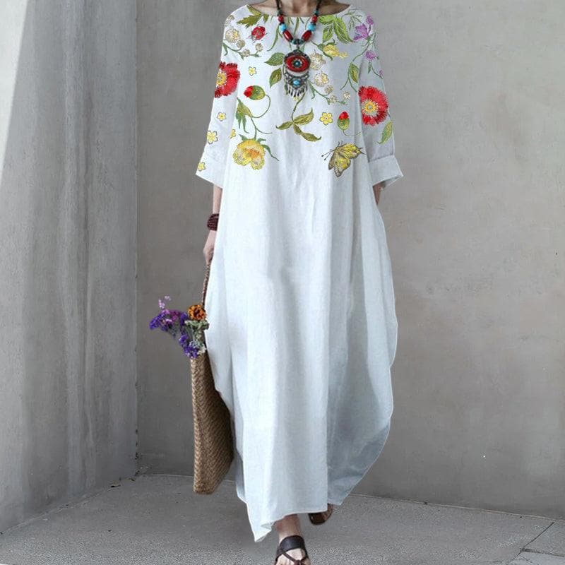 Das Tobiase Kleid mit künstlerisch inspiriertem Blumenmotiv ist ein luftiges Maxikleid, das lässigen Komfort mit einem Hauch von Bohème-Chic verbindet. Der lockere, fließende Schnitt dieses Kleides strahlt mühelose Eleganz aus und macht es ideal für Sommertage oder künstlerische Veranstaltungen. Der geräumige Schnitt sorgt für Bewegungsfreiheit, egal ob Sie einen Tag am Strand verbringen oder einen entspannten Nachmittag im Café genießen.