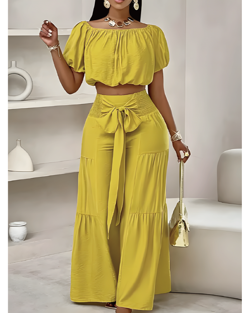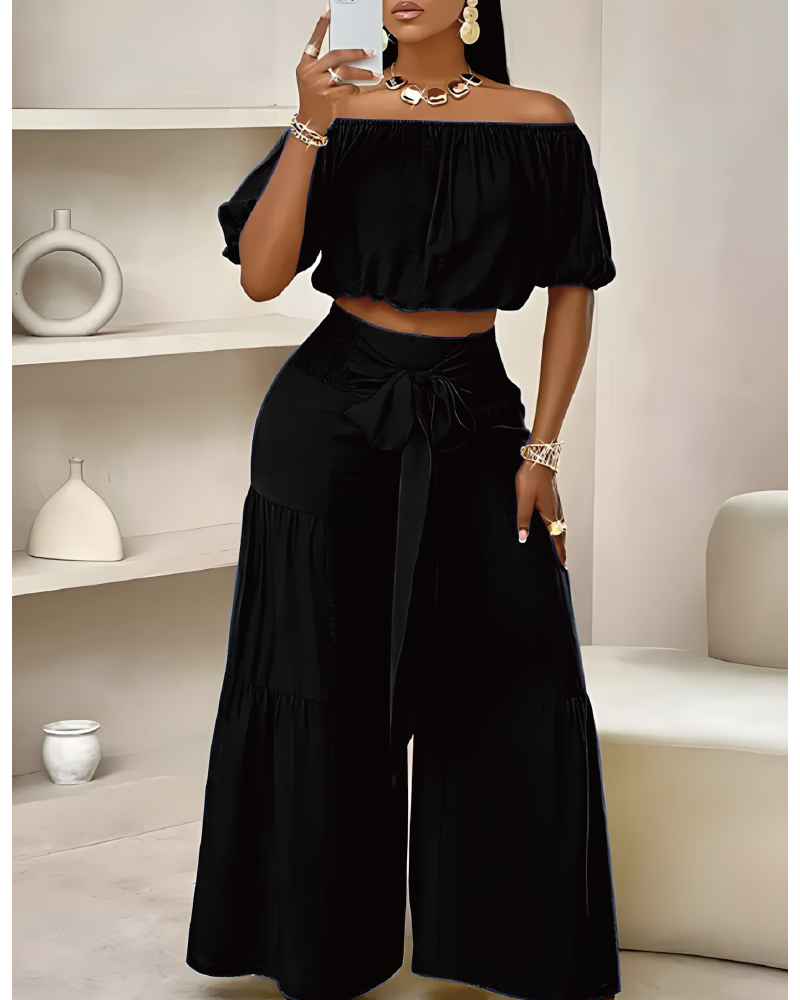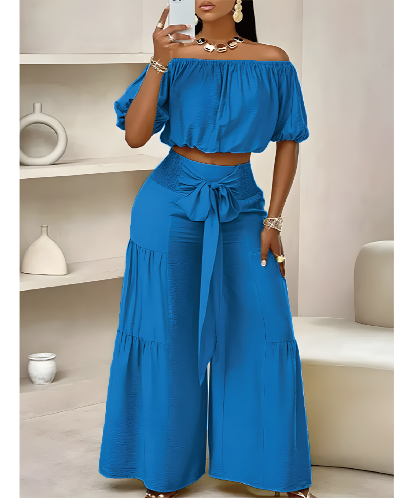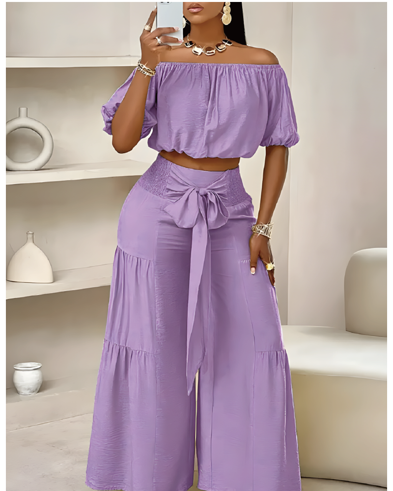 Der Trey ist dein perfekter Begleiter für unbeschwerte Urlaubstage und lässige Alltagsmomente. Mit seinem stylischen Off-Shoulder-Top und den weiten Hosenbeinen vereint er Komfort und modische Eleganz. Der Trey überzeugt durch sein smocktes Bunddetail und die flexible Bindeweite für eine individuelle Passform. Ob am Strand oder in der Stadt – mit dem Trey bist du immer perfekt gekleidet.