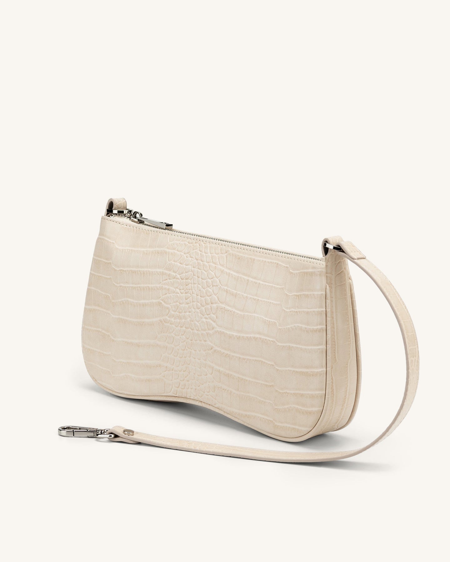 Die Schultertasche kombiniert stilvolles Design mit Nachhaltigkeit. Hergestellt aus hochwertigem, veganem Leder mit Kroko-Prägung, verleiht sie jedem Outfit einen Hauch von Luxus. Die silbernen Beschläge und das schlanke Profil machen sie zum perfekten Begleiter für Tag und Nacht.