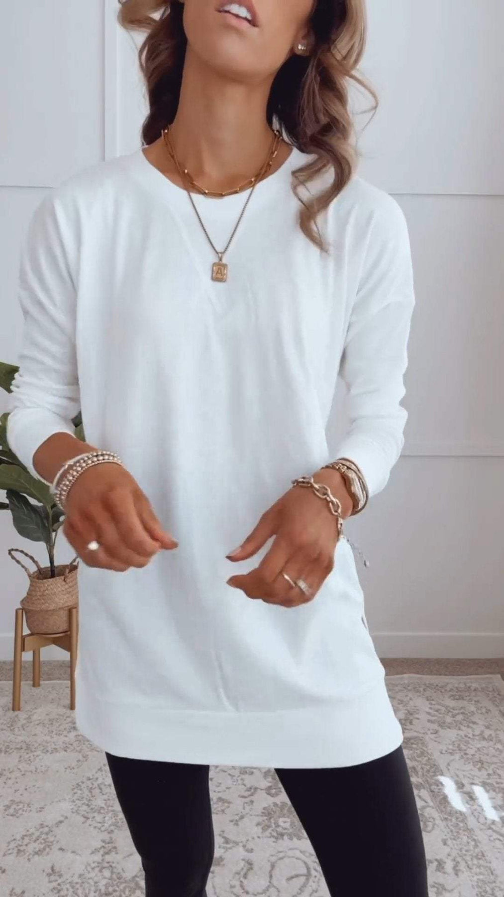 Das nicht nur stilvoll, sondern auch unglaublich vielseitig ist. Dieses Tunika-Oberteil ist ein absolutes Must-Have für jede moderne Frau, die Komfort und Eleganz gleichermaßen schätzt. Mit seinem lockeren Schnitt und den seitlichen Schlitzen bietet das Vivienne™ Langarm-Shirt eine perfekte Balance zwischen lässiger Lässigkeit und raffinierter Eleganz.