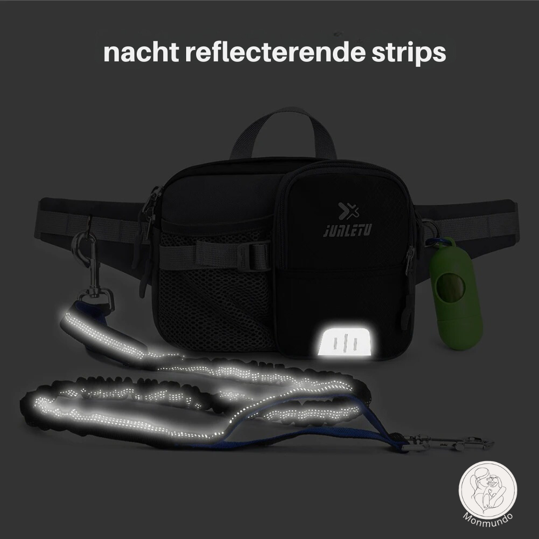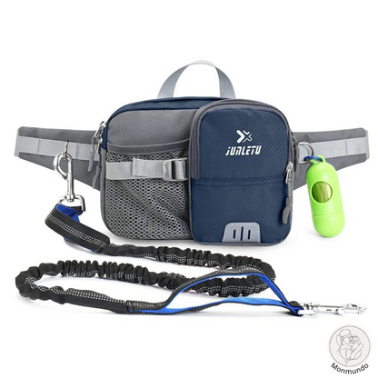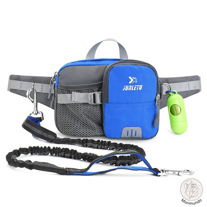 Die integrierte Hüfttasche verfügt über spezielle Fächer für Ihre wichtigsten Utensilien, darunter eine Handytasche und ein Trinkflaschenhalter. Außerdem bieten der gepolsterte Neoprengriff und die robusten D-Ringe mehr Komfort und Kontrolle. Es ist nicht nur eine Leine - es ist eine durchdachte Lösung für stressfreie Ausflüge.