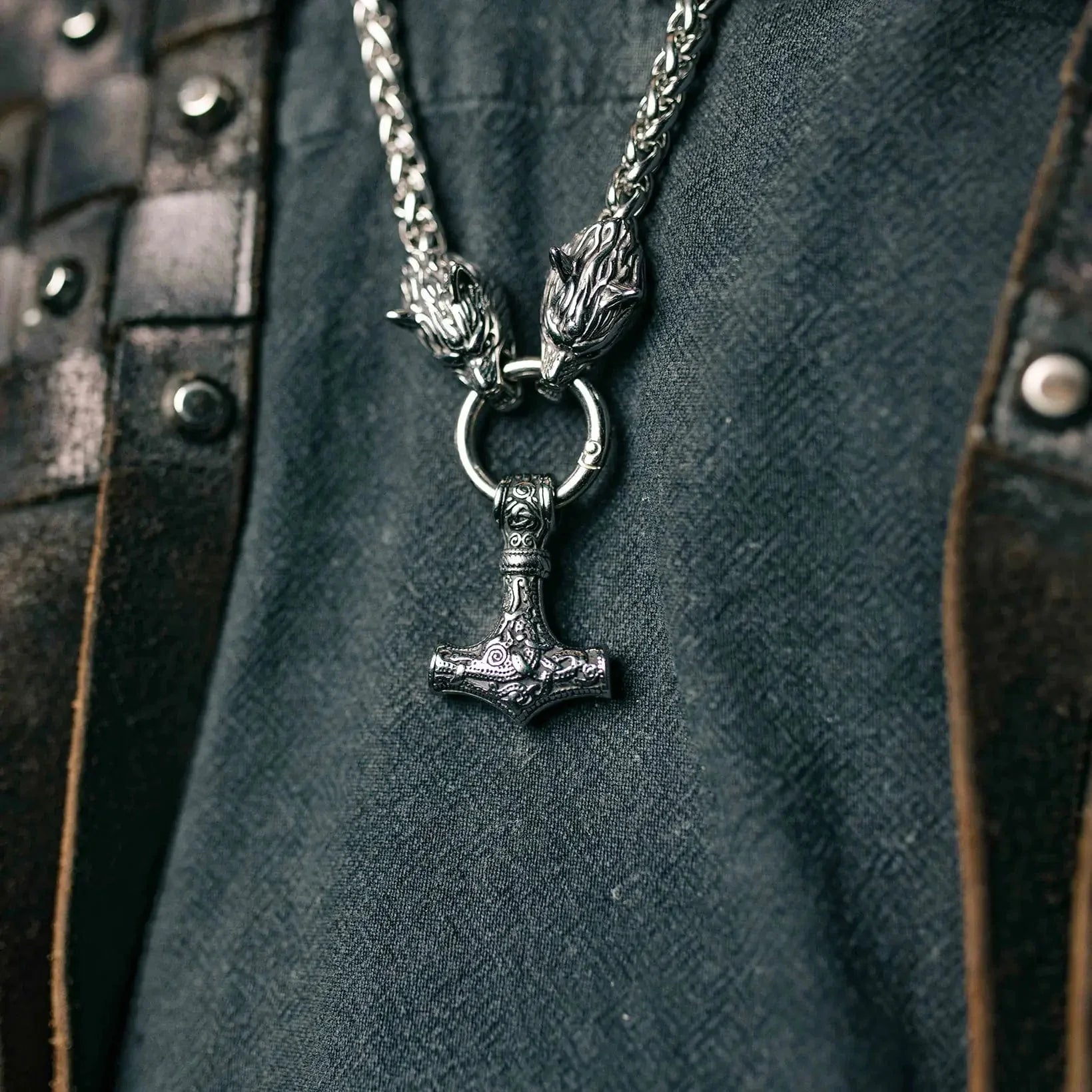 Diese handgefertigte Wikinger Halskette vereint traditionelles nordisches Design mit modernem Stil. Die kunstvoll gestaltete Kette aus hochwertigem Material verkörpert nicht nur die Kraft und den Mut der Wikinger, sondern verleiht jedem Outfit eine einzigartige, maskuline Note.