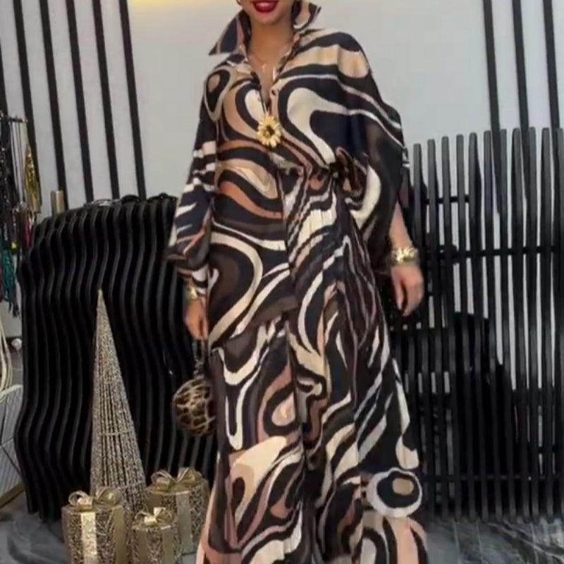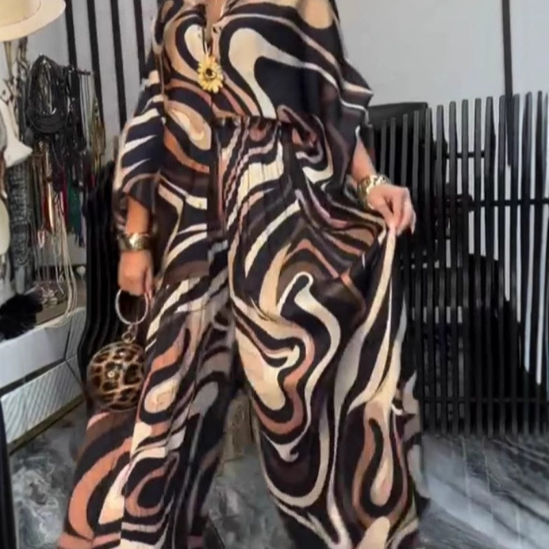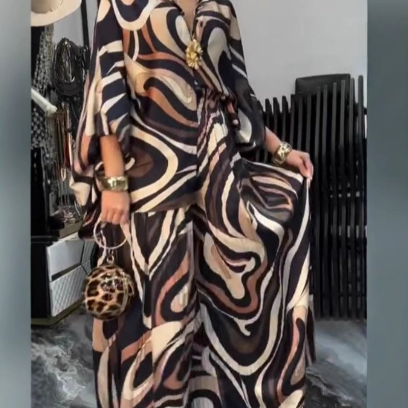 Zara | Modisches Damen-Set mit lockerem, bedrucktem Hemd und Hose mit weitem Bein, 2-teilig